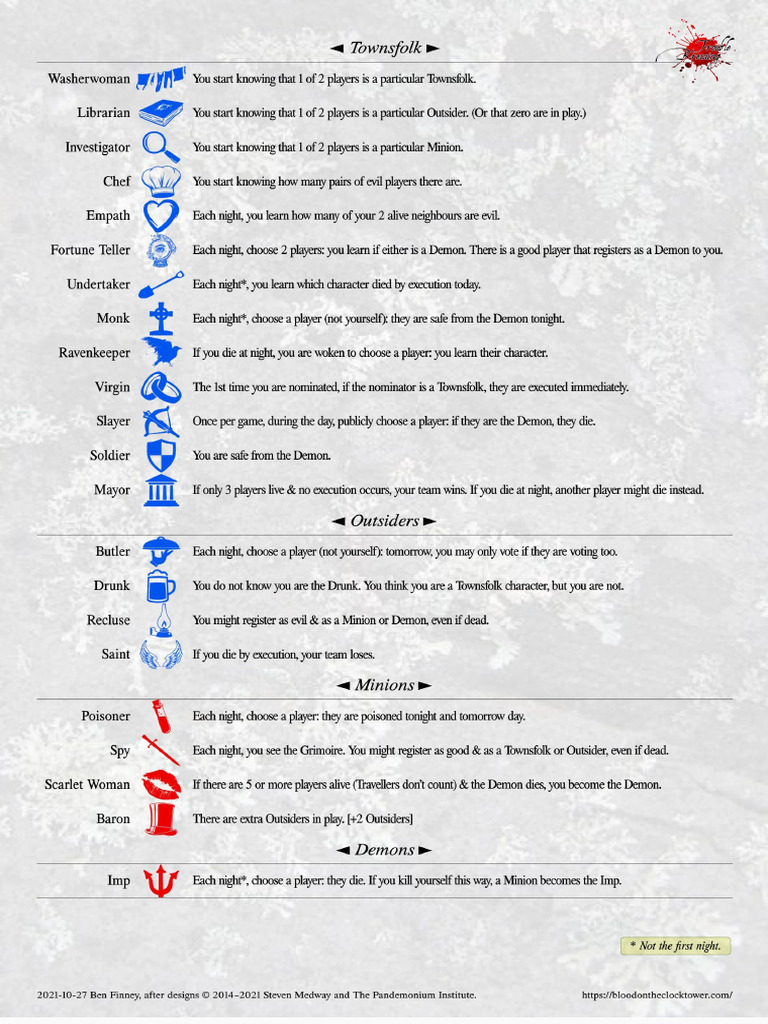 Blood On The Clocktower Sheet , Free Transparent Clipart ClipartKey