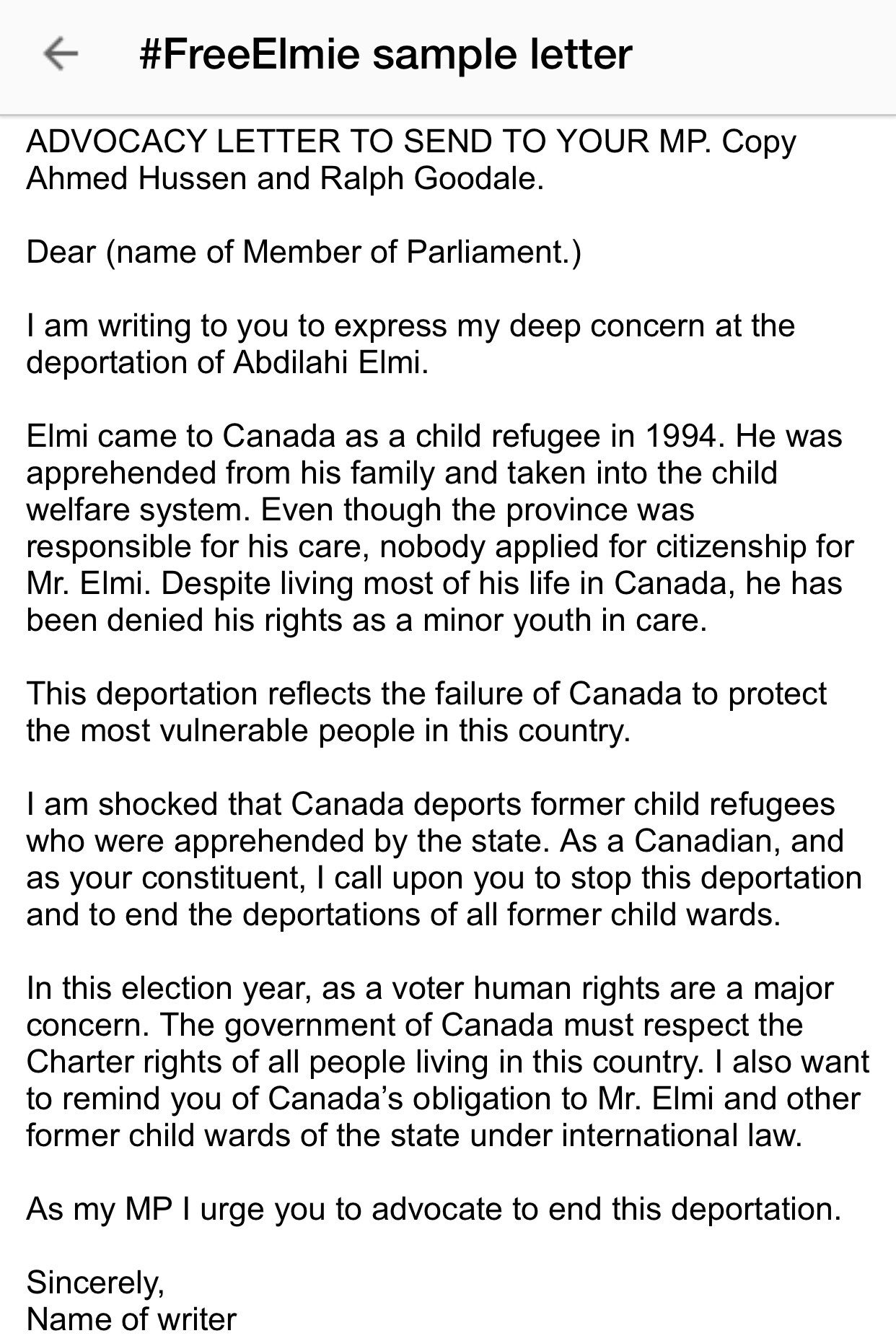 Deportation Letter Of Support Sample