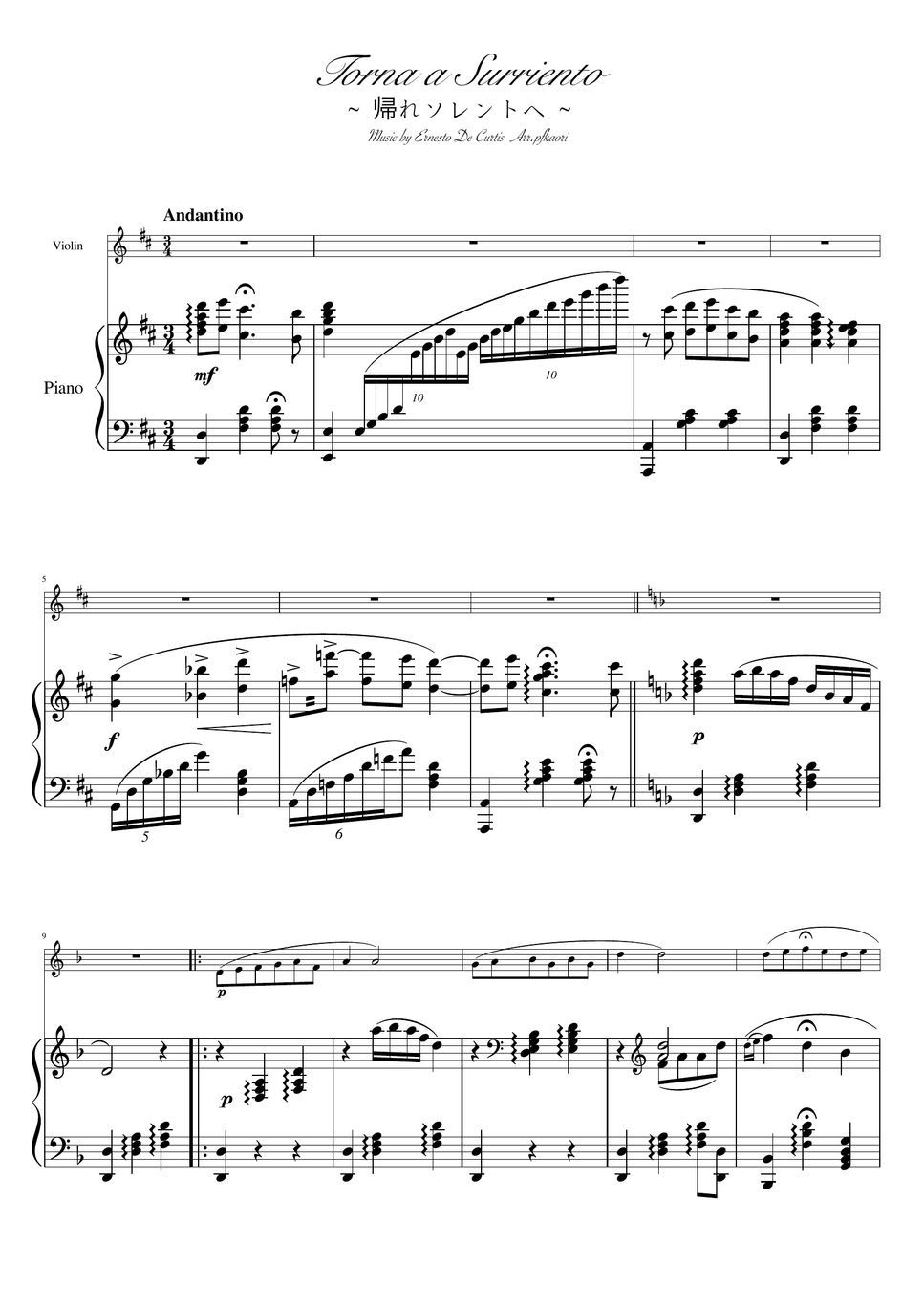 Curtis Torna Surriento (Violin & Piano) Sheets by pfkaori