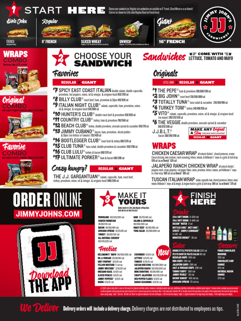 Printable Menu For Jimmy Johns